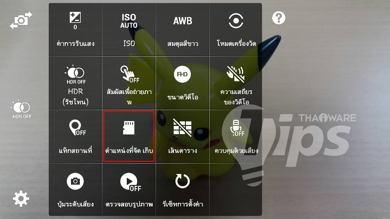 เมื่อเปิดเข้ามาดู การตั้งค่า ของแอปกล้อง จะเห็นเมนูสำหรับการตั้งค่า ตำแหน่งที่จัดเก็บ