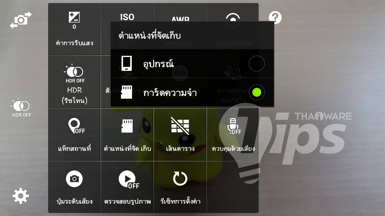 4. เปลี่ยนพื้นที่จัดเก็บ ด้วยการกดที่ปุ่ม เปลี่ยน และเลือกตำแหน่งที่จัดเก็บเป็น SD การ์ด