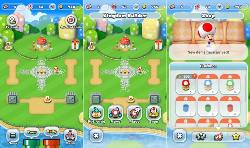 เราสามารถเลือกเล่นตัวละครอื่นๆ ได้ อย่างเช่น Luigi, Yoshi และ Toadette ได้ด้วย โดยเราจะต้องเข้าไปใน Kingdom Builder แล้วสร้างบ้านของตัวละครที่ต้องการเล่น