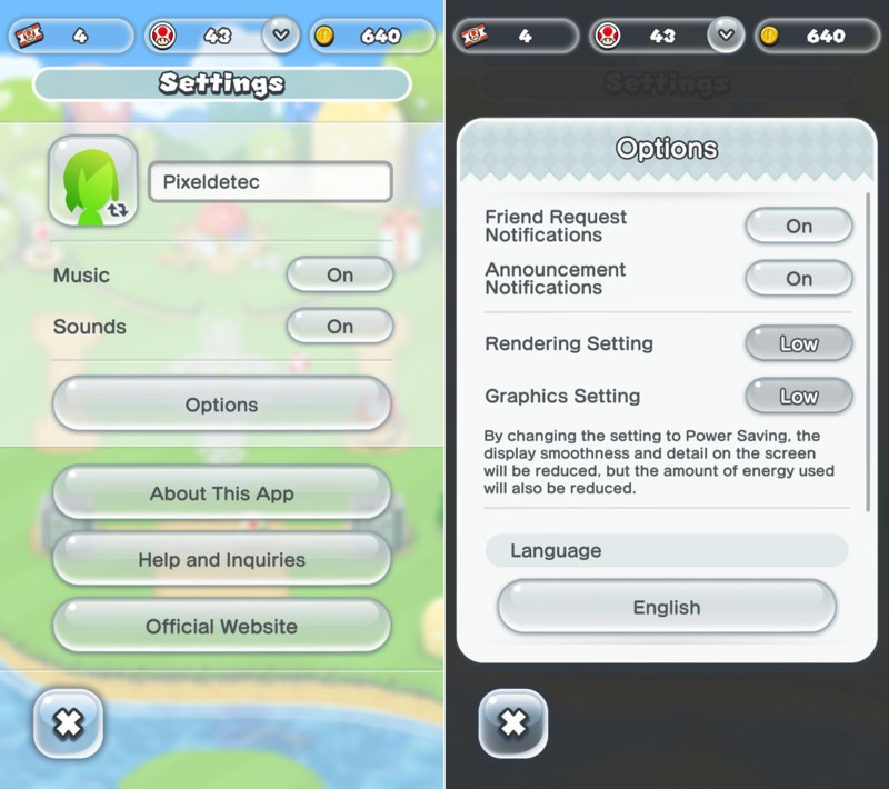 เราสามารถประหยัดพลังงานด้วยการลดคุณภาพกราฟฟิกของตัวเกมส์ได้ ด้วยการไปที่ Settings >> Options ในส่วนของ Rendering Settings ปรับ Grapics Settings ให้เป็น Low