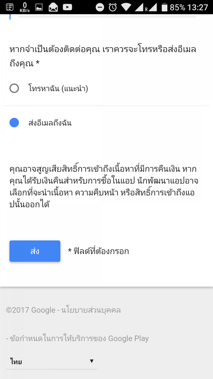 การขอเงินคืน สามารถทำได้ ภายใต้เงื่อนไขของบริการ Store ที่เราซื้อ สำหรับ Google Play Store บนมือถือ Android นั้น แบ่งออกเป็น ขอเงินคืนภายใน 2 ชั่วโมง และภายใน 48 ชั่วโมงของการสั่งซื้อ