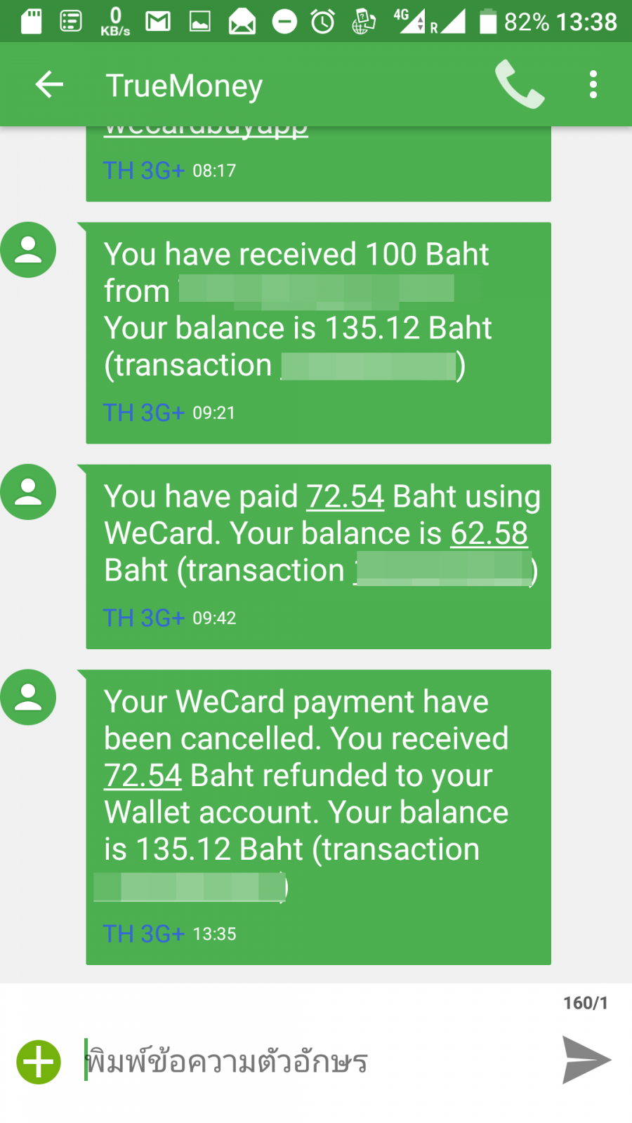 ใน SMS ก็มีแจ้ง (ผู้เขียนใช้บริการ SMS แจ้งของบัตรเครดิต)