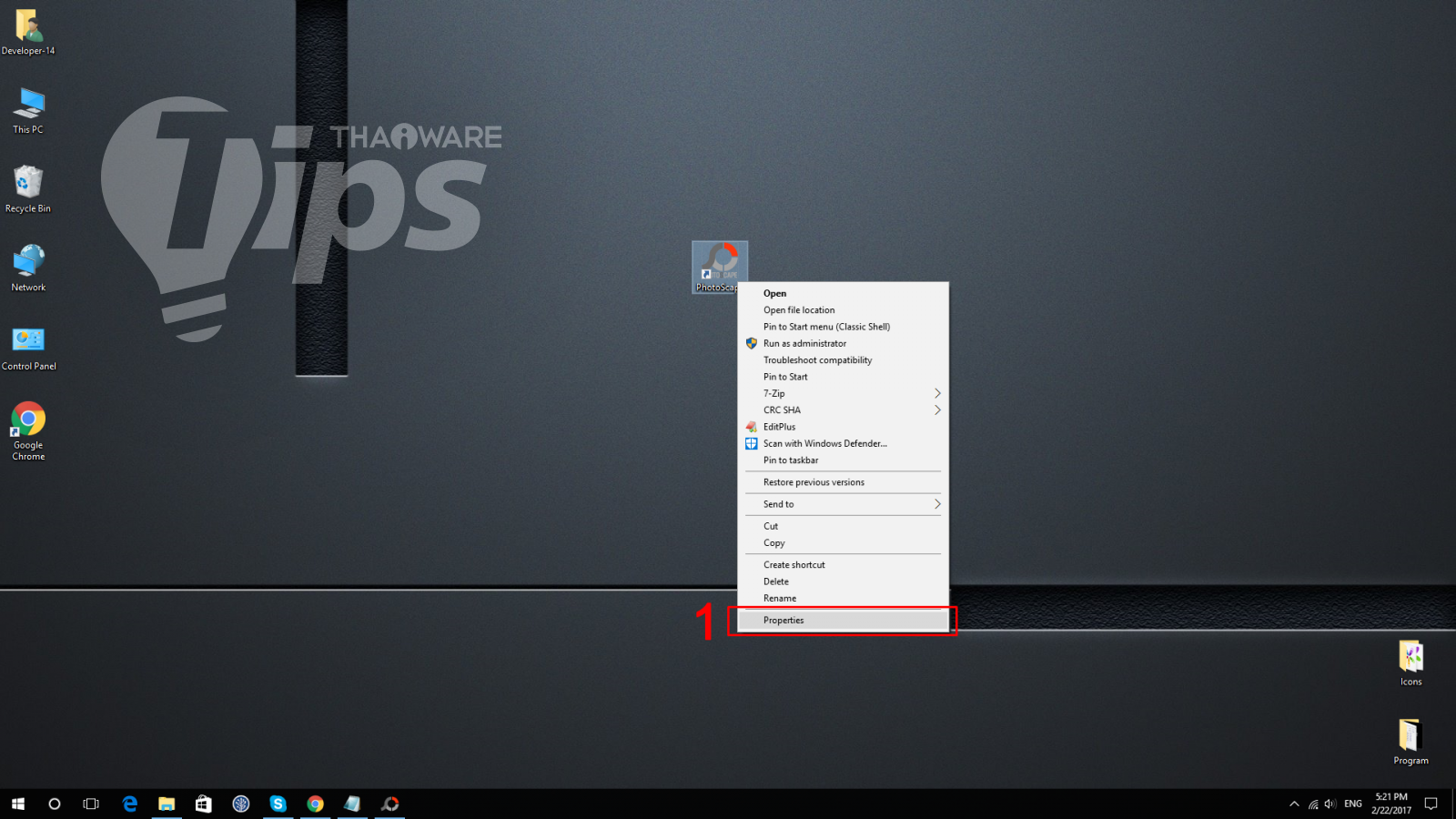 1. คลิกขวาที่ไฟล์ Shortcut ของโปรแกรมที่เราจะใช้งานฟีเจอร์ดังกล่าว แล้วคลิกเลือก Properties