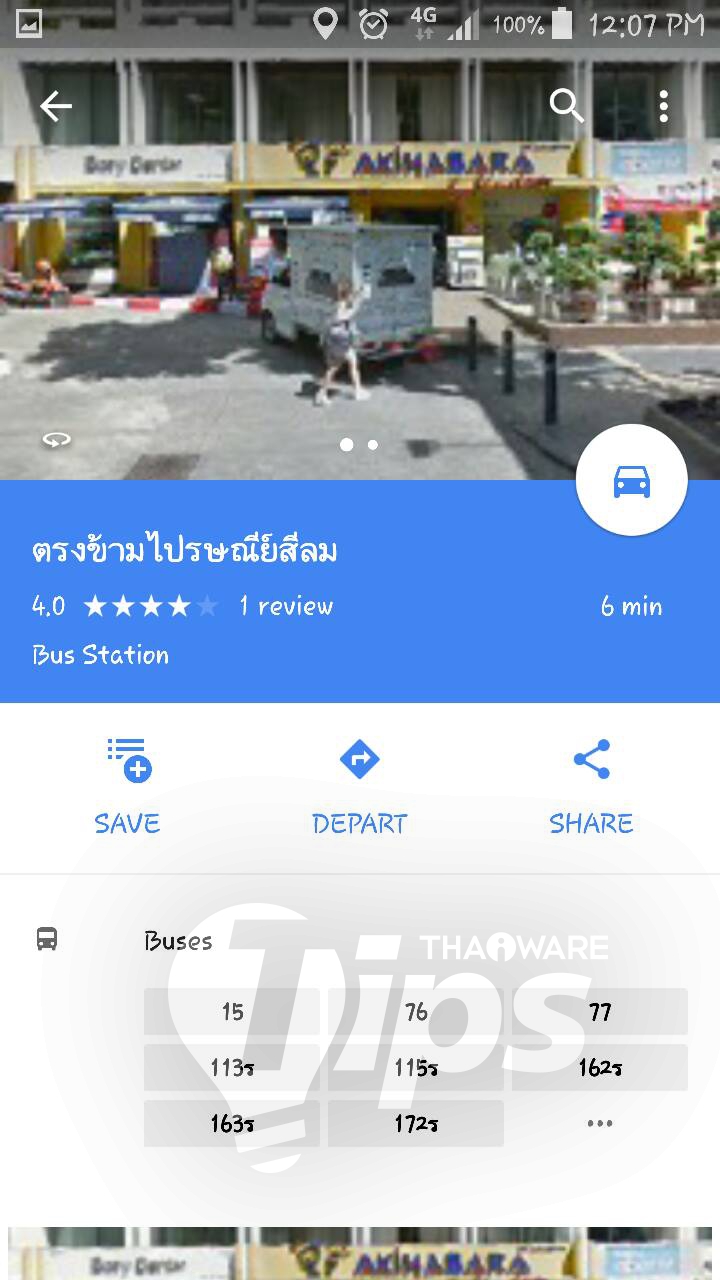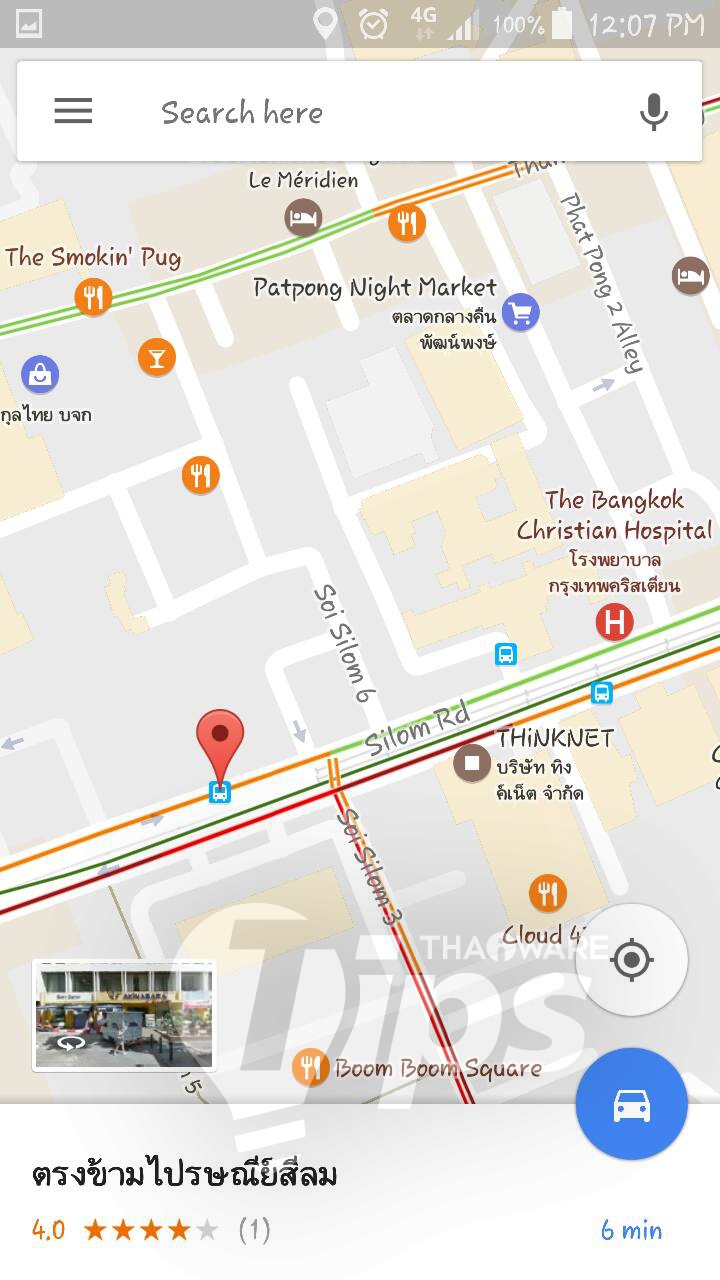 ก่อนอื่นก็เปิด Google Maps บนมือถือขึ้นมาเลย จากนั้นมองหาป้ายรถเมลที่เราจะไปขึ้น (กดที่ไอคอนป้ายรถเมลสีฟ้า)