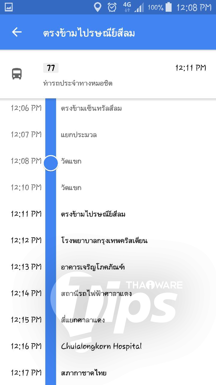 ยังไม่หมดแค่นั้น ถ้าเรากดเลือกสายรถเมลจาก ขั้นตอนที่ 4 เราจะสามารถติดตามความเคลื่อนไหวของรถเมลสายนั้นๆ ว่าตอนนี้อยู่ที่ป้ายไหนแล้ว ได้อีกด้วย