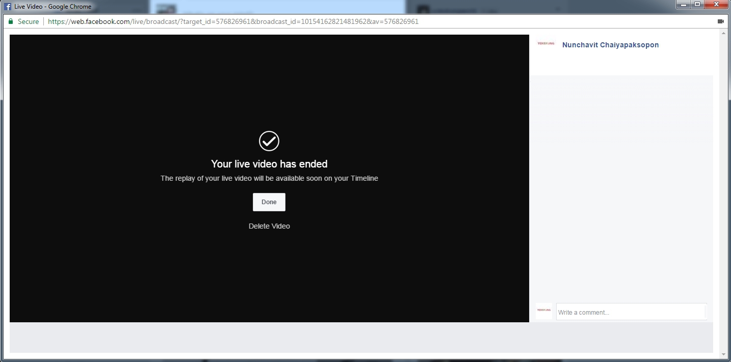 เมื่อสิ้นสุดการ Live ให้กด Finish แล้วเลือกว่าจะลบวิดีโอ หรือให้ระบบประมวลผลวิดีโอไว้บนหน้า Facebook ของเรา จากนั้นกด Done ปกติ วิดีโอจะบันทึกไว้บน Facebook ให้คนที่ไม่ทันได้ดูได้ดูภายหลังได้