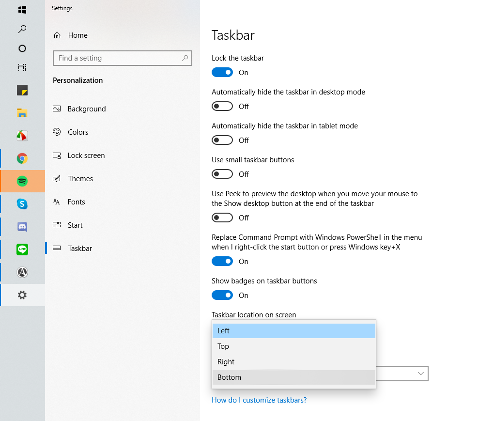 แถบstart เลือนไปด้านซ้ายมือ ทำอย่างไรเลิอนกลับมาเหมือนเดิม