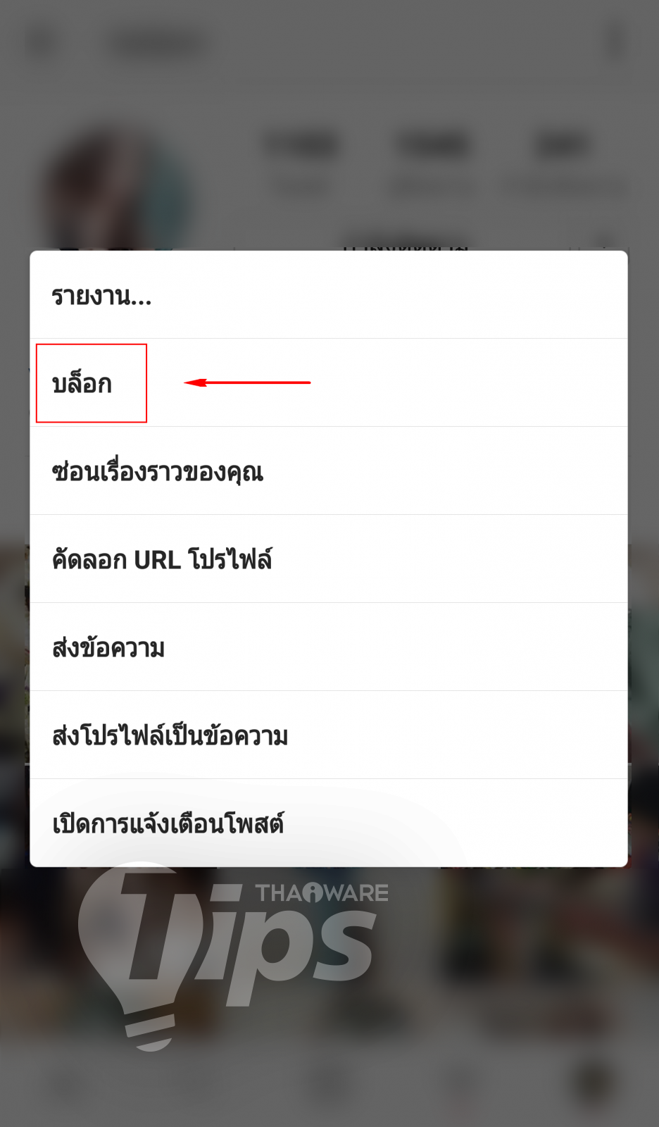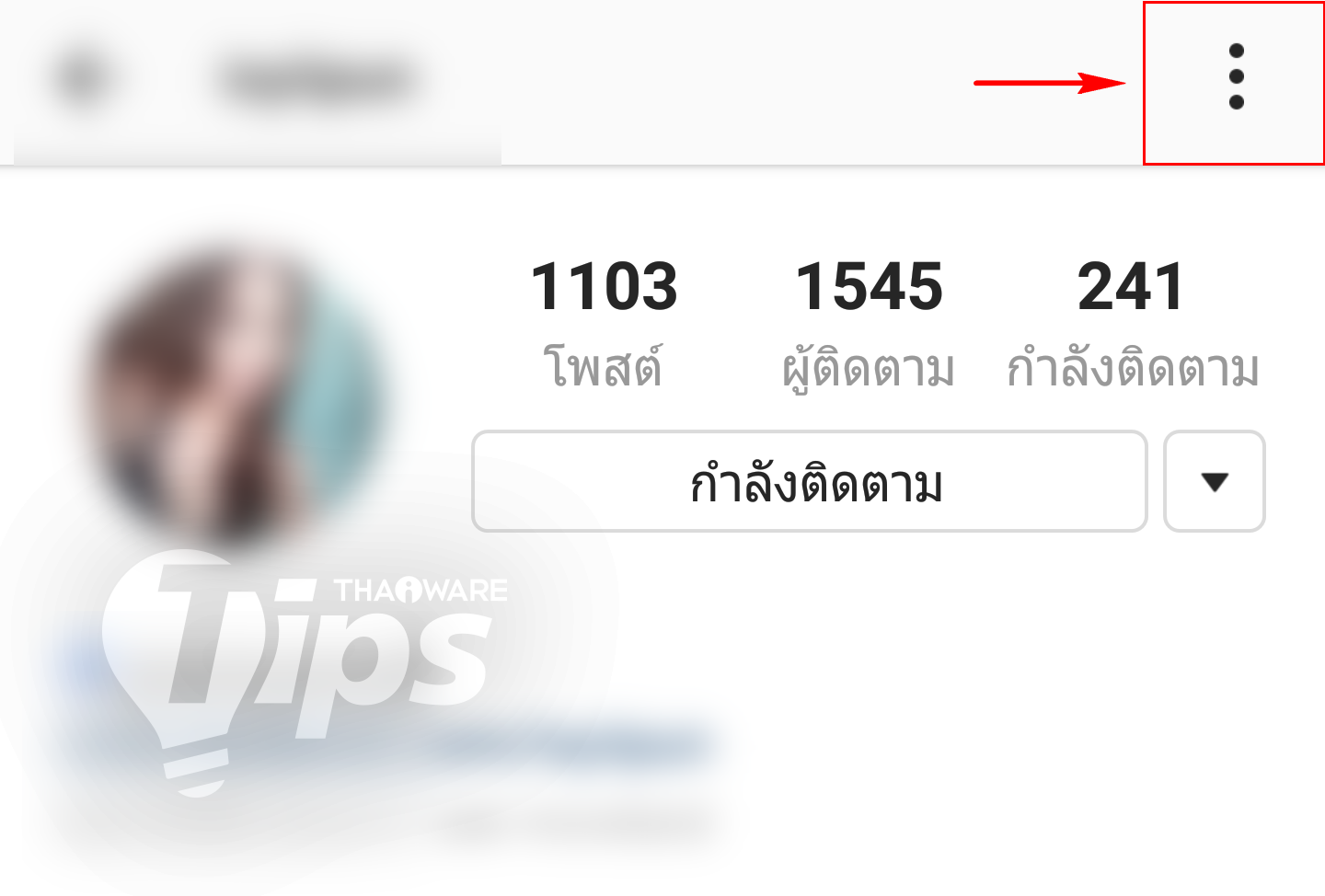 2. เข้าไปที่หน้าโปรไฟล์ผู้ติดตามที่ต้องการบล็อก > คลิกที่ สัญลักษณ์จุด 3 จุด (มุมบนขวา)