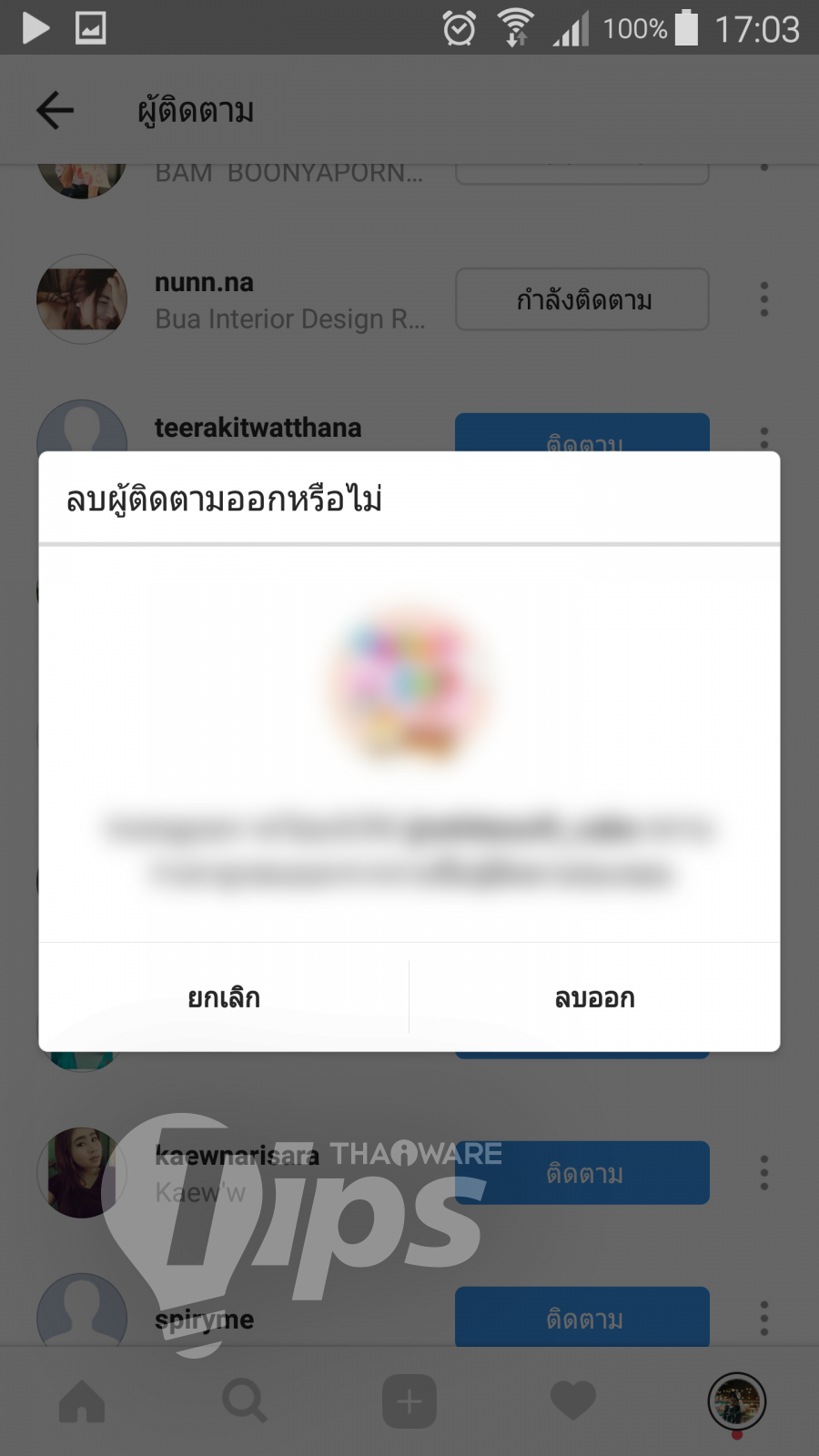 4. Instagram จะเด้งหน้าอินเตอร์เฟสขึ้นมาให้คุณ ยืนยันการลบ ผู้ติดตาม