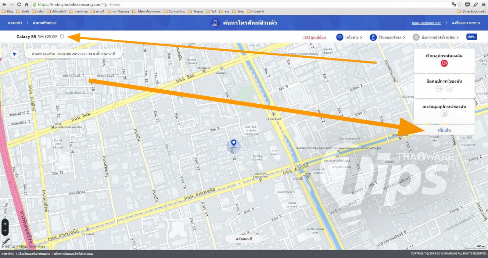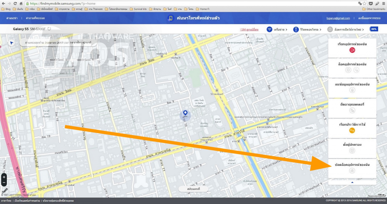 แล้วก็จะเข้าสู่หน้าเว็บสำหรับการสั่งควบคุมสมาร์ทโฟนของเราจากระยะไกล โดยจะมีการแสดงชื่อรุ่นสมาร์ทโฟนของเรา ที่ตรงมุมซ้ายบนของหน้าต่าง ซึ่งฟีเจอร์การควบคุมสมาร์ทโฟนจากระยะไกล มีประโยชน์มากในกรณีที่ทำเครื่องหาย เพราะเราสามารถสั่งล็อกเครื่อง และสามารถสั่งลบข้อมูลทั้งหมดในเครื่องได้เลย