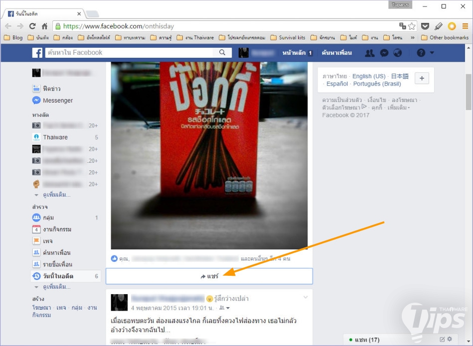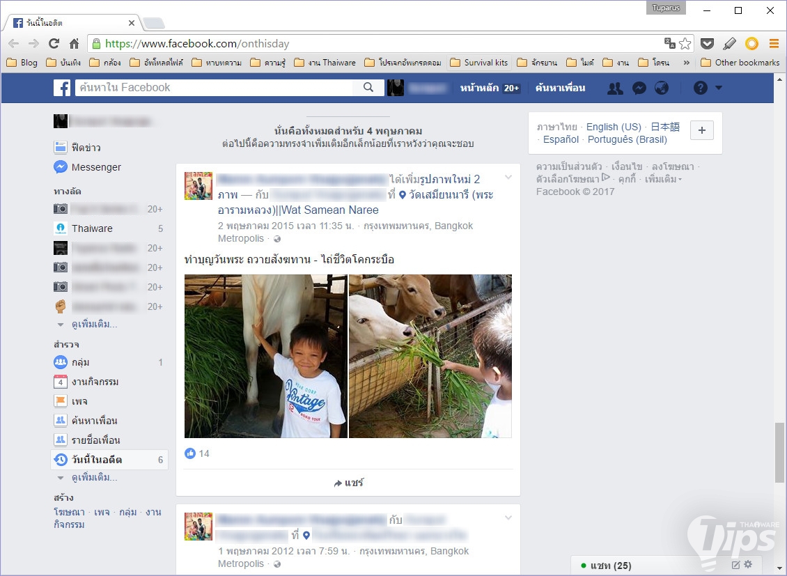 แต่ในทิปส์นี้ เราขอนำเสนอสิ่งที่ดีต่อใจ แถมยังง่ายถึงขนาดที่คุณต้องอุทานออกมาว่า มันง่ายขนาดนั้นเลยเหรอ! มันคือฟีเจอร์ที่ทาง Facebook เขาตั้งชื่อให้ว่า On this day หรือ วันนี้ในอดีต ซึ่งเป็นหน้าเว็บที่รวบรวมสิ่งที่เราโพสต์ในวันเดียวกันนี้ของปีก่อนๆ ลองเปิด URL ต่อไปนี้ แล้วคุณจะพบกับผลลัพธ์ที่น่าทึ่ง