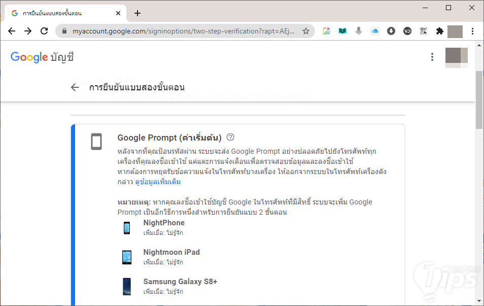 โดยอุปกรณ์ที่เรามีการเข้าระบบบัญชี Google เอาไว้อยู่แล้ว จะสามารถใช้งาน Google Promt ได้ทันที
