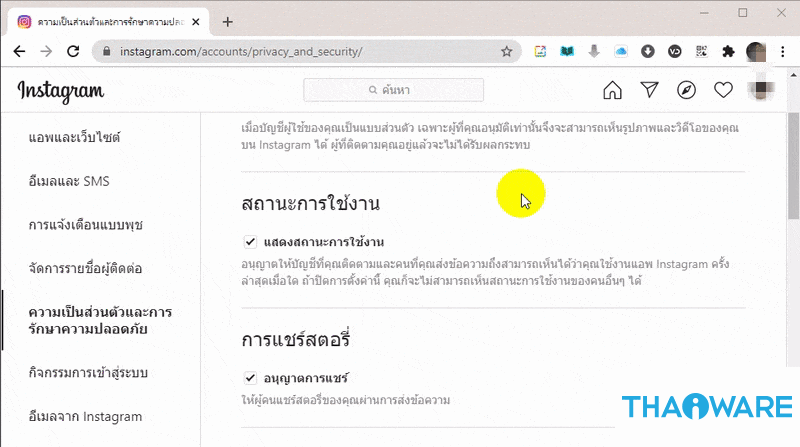 ใช้เว็บเบราว์เซอร์เปิดไปที่ https://www.instagram.com/accounts/privacy_and_security/ ด้านซ้ายคลิกที่เมนู "ความเป็นส่วนตัวและการรักษาความปลอดภัย" จากนั้นที่ฝั่งขวาเลื่อนหาเมนู "การยืนยันตัวตนแบบสองชั้น" คลิกที่ "แก้ไขการตั้งค่าการยืนยันตัวตนแบบสองชั้น"