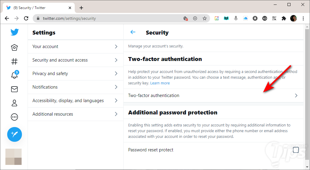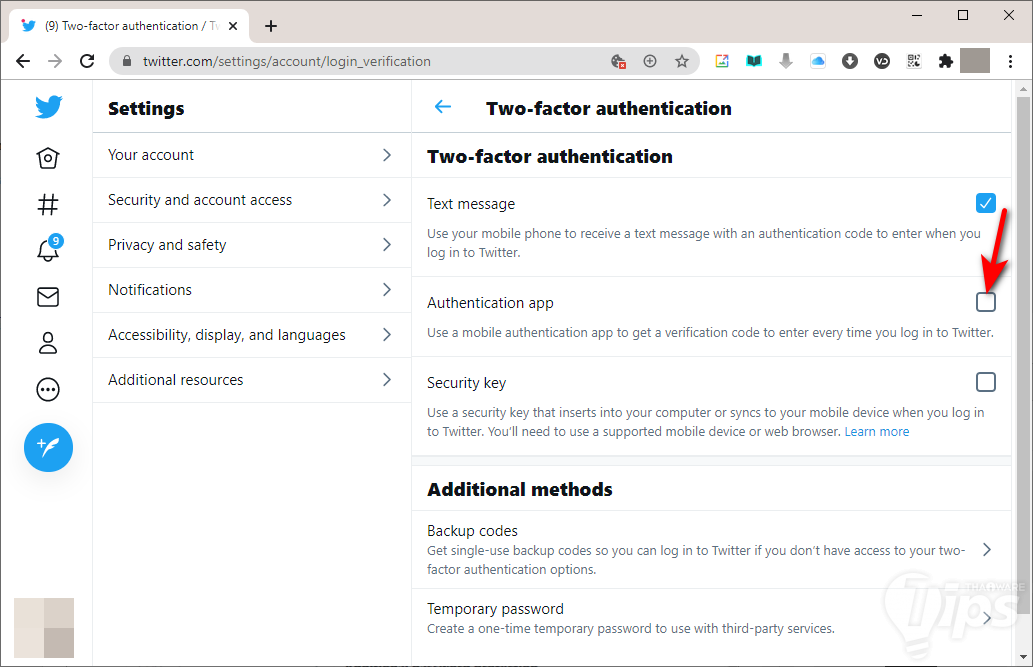 ใช้เว็บเบราว์เซอร์เปิดไปที่ https://twitter.com/settings/security ด้านขวาที่เมนู "Two-Factor Authentication"