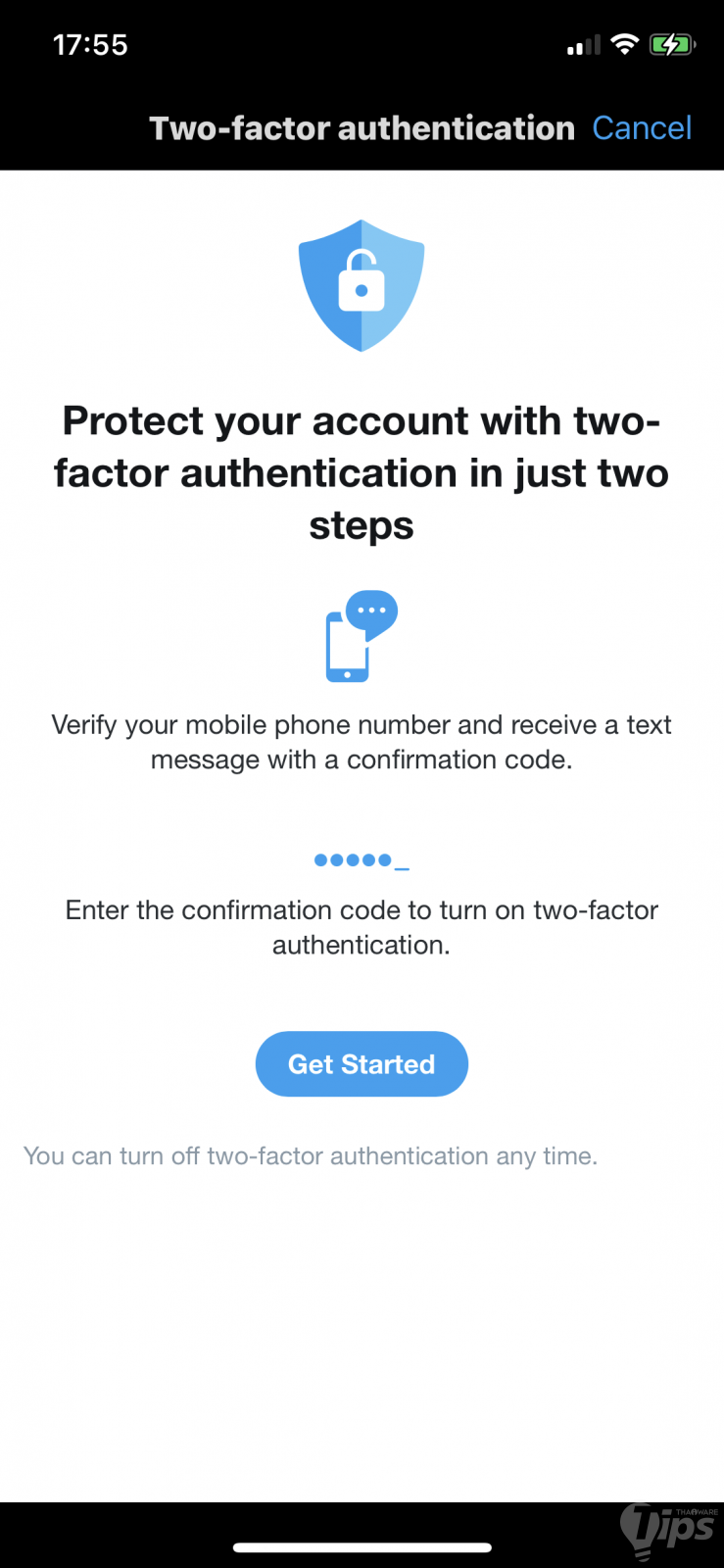 แตะ Get Started ที่เหลือก็ไม่ต่างอะไรกับการทำบนคอมพิวเตอร์แล้วครับ เลือกวิธีการรับรหัส แล้วทำตามขั้นตอนที่ปรากฏบนหน้าจอได้เลย