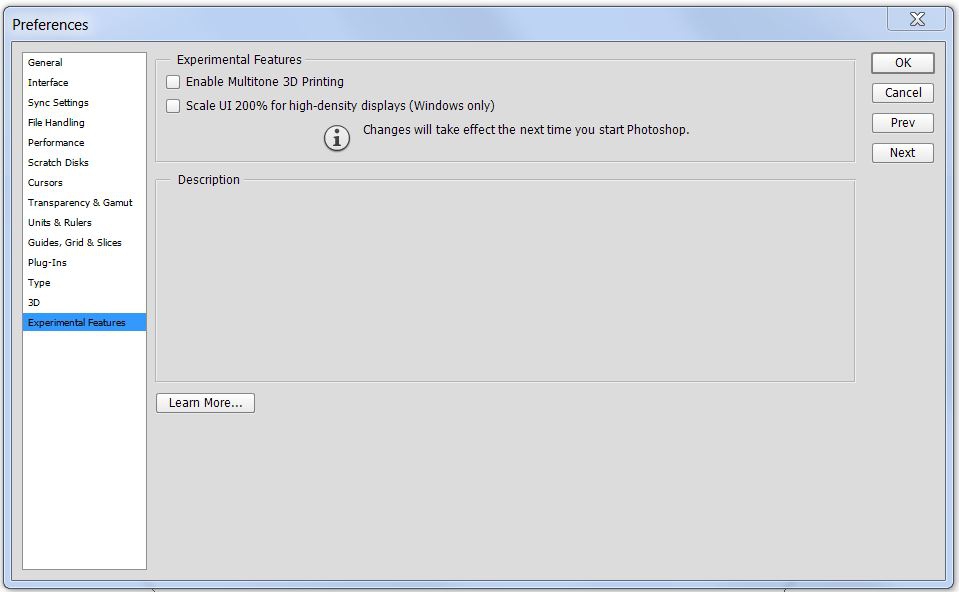 สำหรับคนที่ Photoshop ไม่มีเมนู Experimental Features