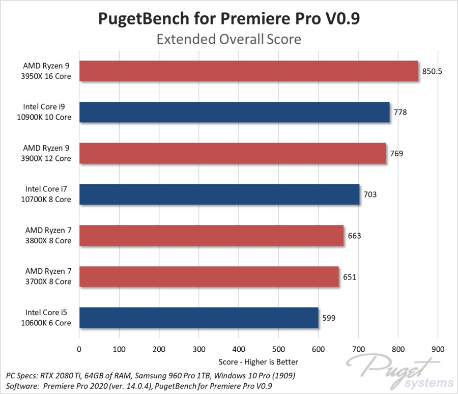ภาพจาก https://www.pugetsystems.com/labs/articles/premiere-pro-cpu-performance-intel-core-10th-gen-vs-amd-ryzen-3rd-gen-1763/