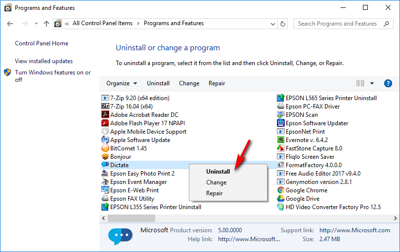 ภายในตัว Program and Feature จะรวบรวมรายชื่อของโปรแกรมต่างๆ และการอัปเดตเวอร์ชันของ Windows รวบฟีเจอร์ต่างๆ ไว้ภายในนี้ โดยเราสามารถเลือกดูรายชื่อโปรแกรม ที่ต้องการถอนการติดตั้งได้เลยทันที