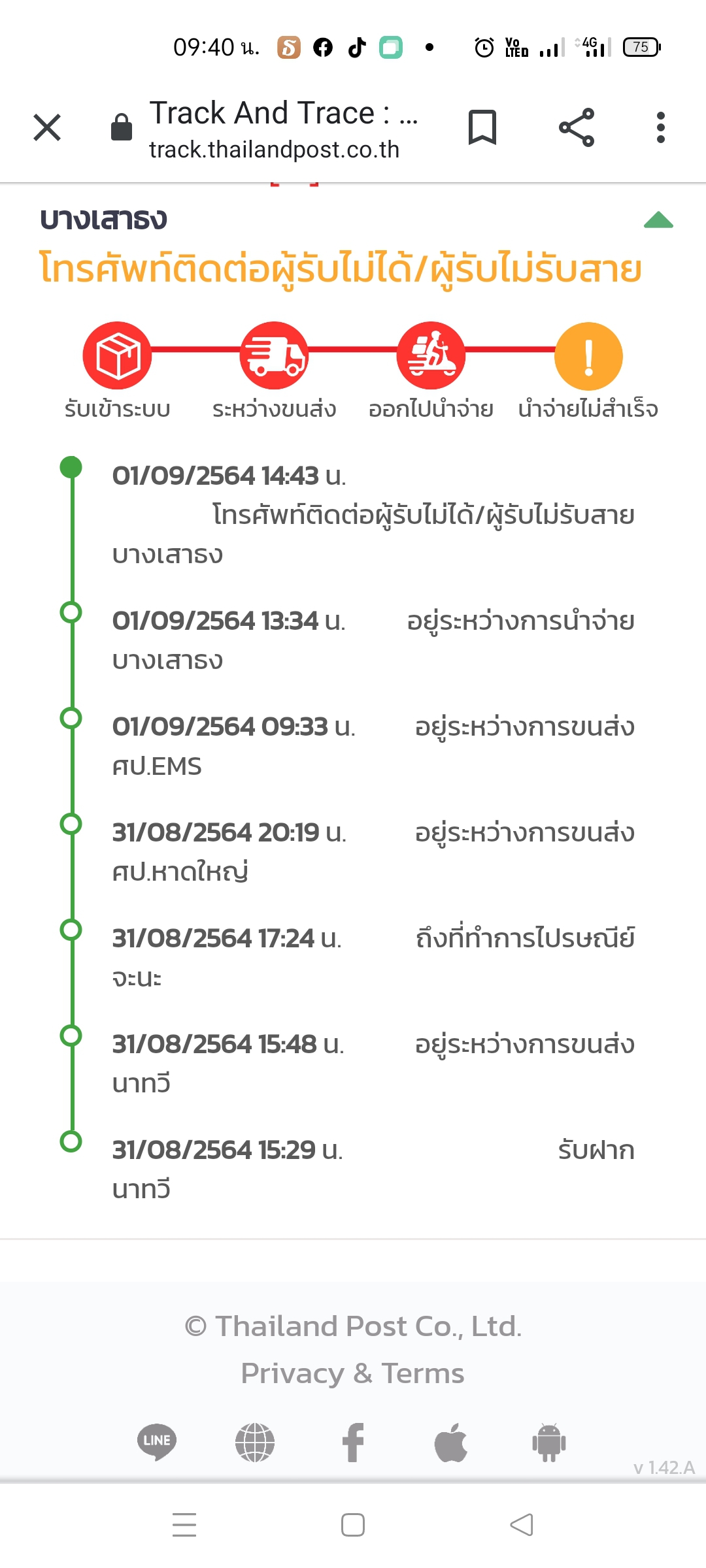 พอดี. มาทำงานไม่มีคนรับของให้ ปกติ การส่งของที่อื่น เขาจะโทรแจ้งหากไม่มีรับ เบอร์ ก็มี. คือ ให้เราไปไหน ยังไง อยู่ไหน เรา ก็ ไม่รุ้. เราไม่มีเวลา ขนาดนั้น.