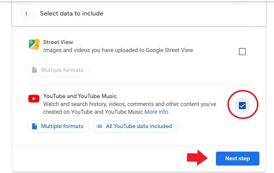 หลังจากนั้นให้คุณกดคลิกที่ "ช่อง Deselect all" เพื่อปลดแอปที่ติ๊กเอาไว้ทั้งหมดออก จากนั้นเลื่อนไปหา YouTube และ ติ๊กแค่ช่อง YouTube เพื่อจะสำรองแต่ข้อมูล YouTube เท่านั้น จากนั้นกด "ปุ่ม Next Step"