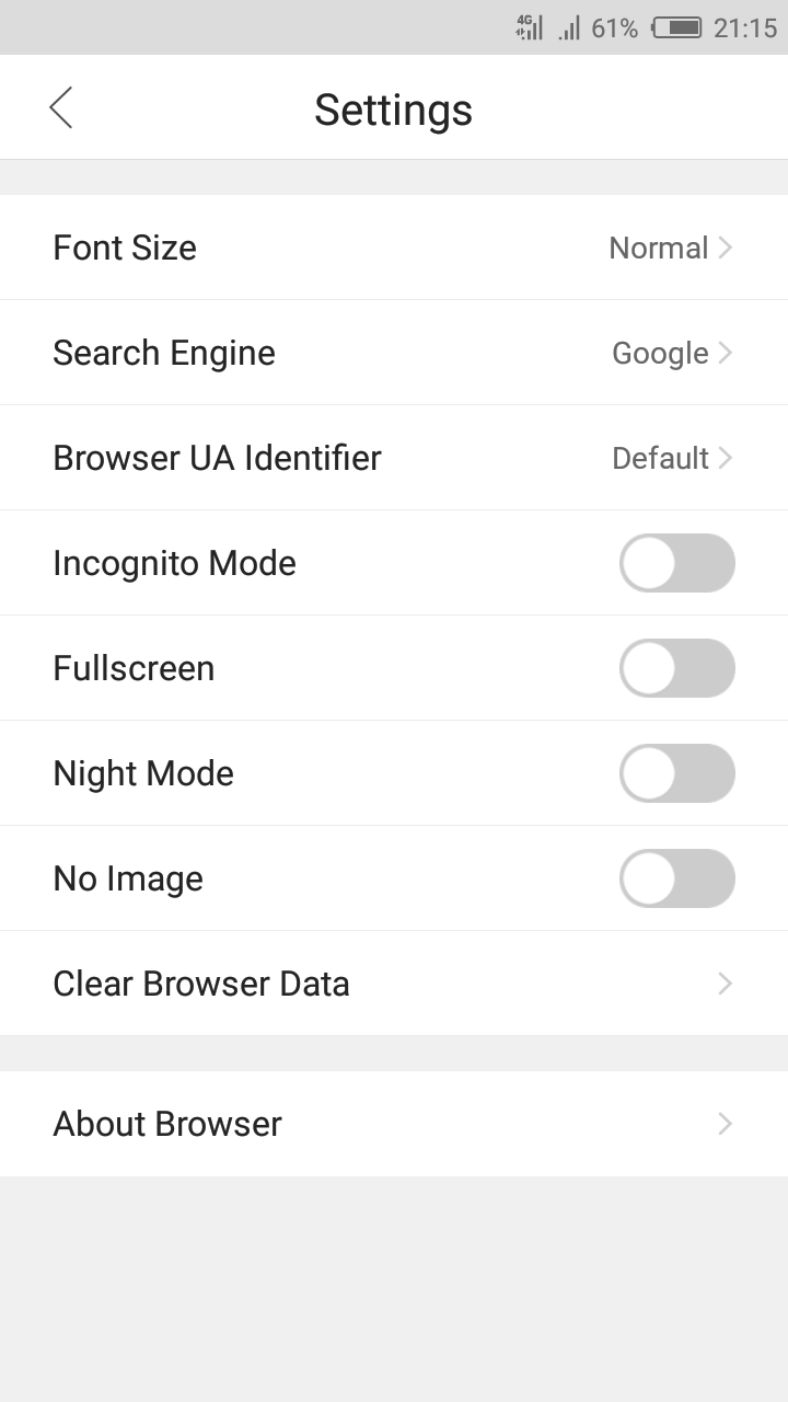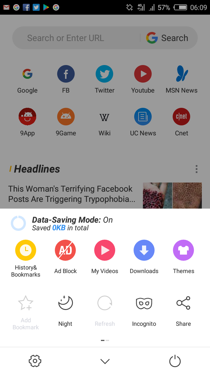 ปิดท้ายด้วย Browser ที่มาพร้อมมือถืออย่าง UA Browser เวอร์ชัน 1.2.0.0074 มีโหมด Dark มาให้เปิด - ปิดได้ตามต้องการ โดยเข้าไปที่ ปุ่ม 3 ขีดด้านล่าง -> Setting เลือก Night Mode