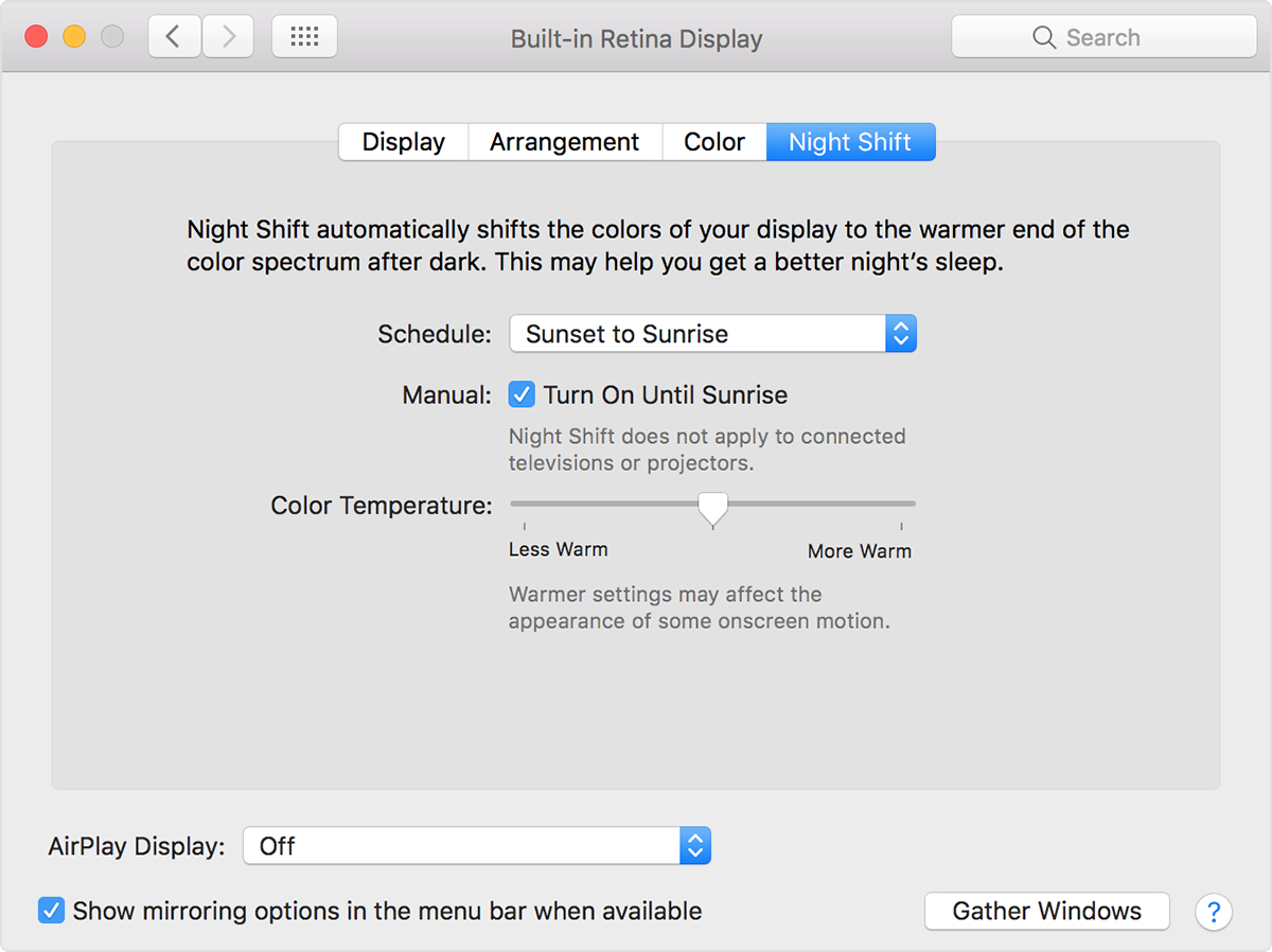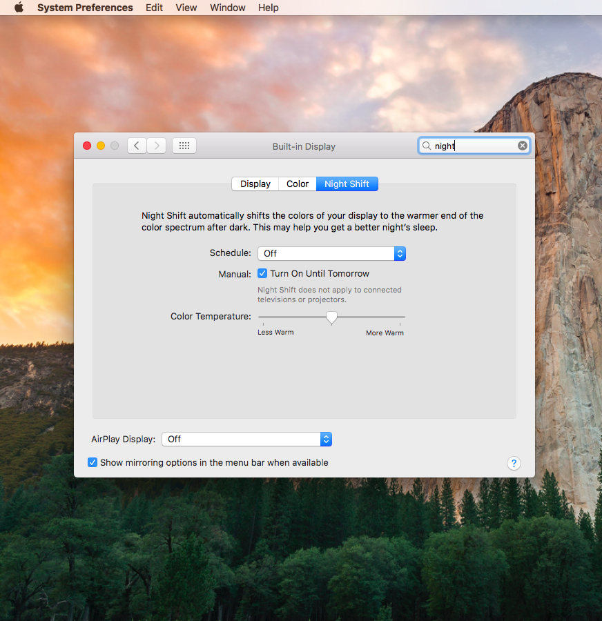 Night Shift สีตุ่นๆ บน macOS Sierra 10.12.4