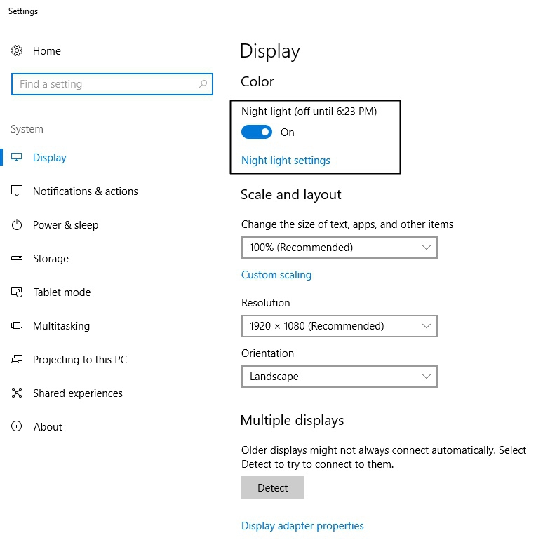 กดเข้าไปที่ Night Light Settings ถ้าต้องการเปิดโหมด Night Light ทันที ให้เลือก Turn on now