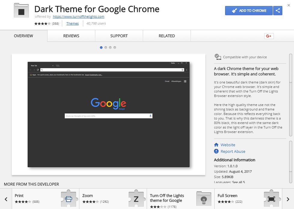 เป็น Dark Theme (Dark Skin) อาบโทนดำให้ Chrome แนวปิดไฟเช่นกัน