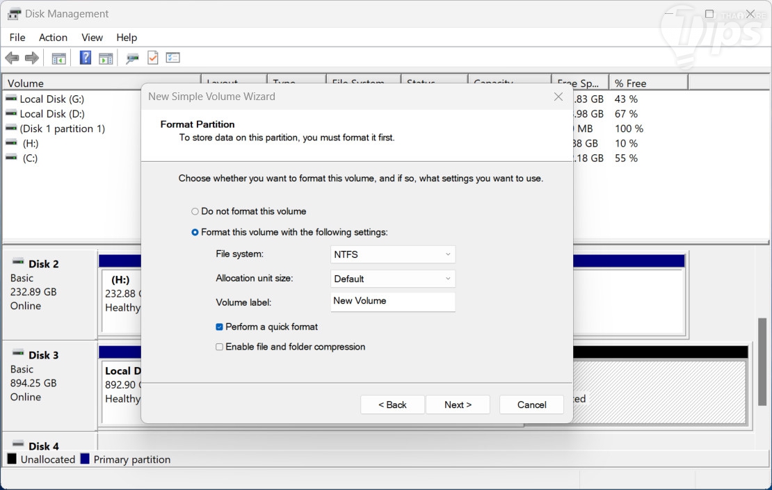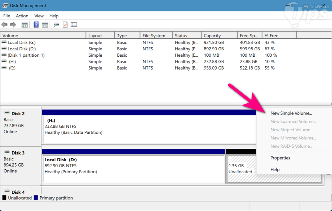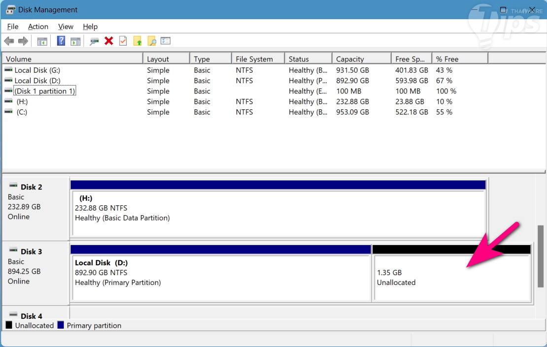 พื้นที่ที่เกิดจากการ "Shrink" หรือพื้นที่ใน SSD หรือ HDD ตัวใหม่ที่เราติดตั้งเพิ่มเข้าไปใน ตัวระบบปฏิบัติการ Windows จะยังมองไม่เห็นในทันที เพราะไดร์ฟดังกล่าวตัวพื้นที่จะถูกจัดเป็น "Unallocated" เอาไว้อยู่ เราจะต้องทำให้ระบบรู้จักพื้นที่ดังกล่าวด้วยการสร้างพาร์ทิชันให้มันเสียก่อน ด้วยขั้นตอนดังนี้