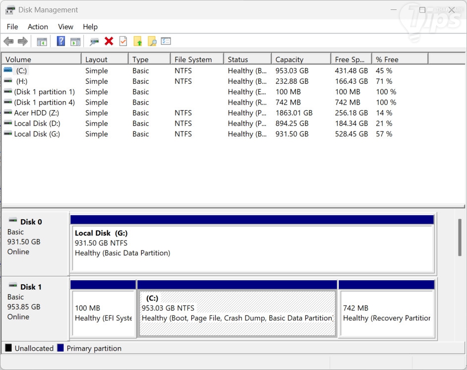 บนระบบปฏิบัติการ Windows 11 ผู้ใช้สามารถเรียกใช้งาน Disk Management ได้หลายวิธี