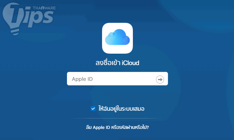 เปิดเว็บบราวเซอร์ขึ้นมา แล้วไปที่ URL : https://www.icloud.com/ และทำการเข้าระบบด้วย Apple ID ของเราครับ