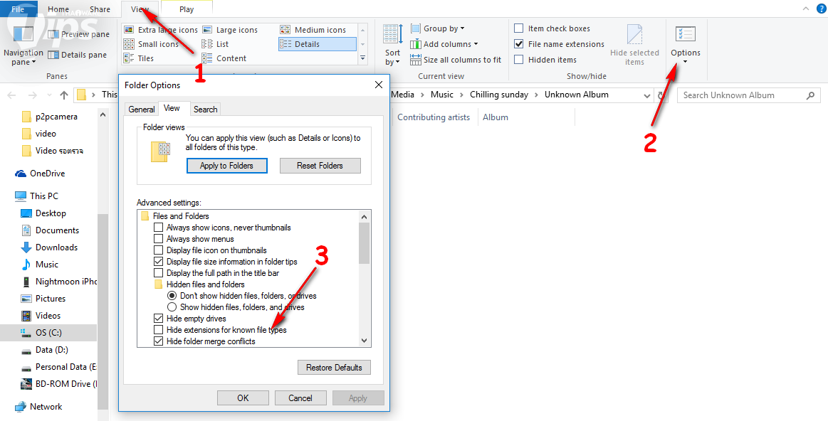 สำหรับใครที่ไฟล์ไม่แสดงนามสกุล .m4a ในหน้าต่าง Windows Explorer ให้ "คลิก View" แล้วติ๊กเครื่องหมายถูก ☑ ตรงเมนู File name extensions เท่านี้ ระบบปฏิบัติการวินโดวส์ก็จะแสดงนามสกุลไฟล์แล้วครับ)