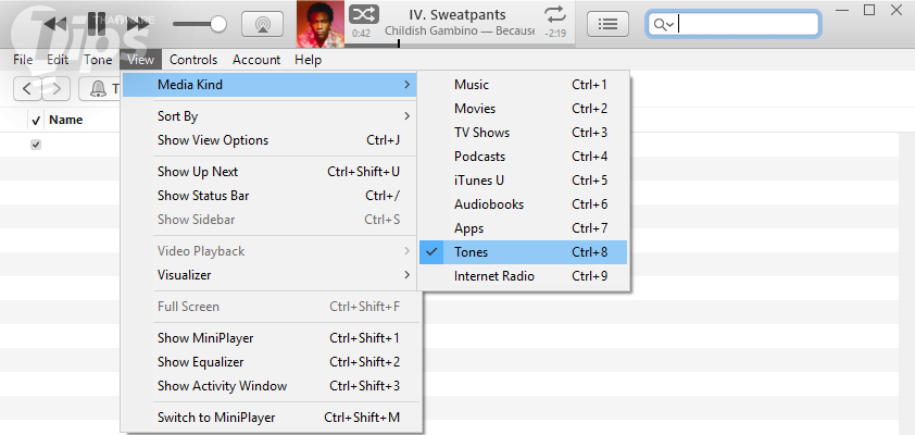 วิธีเปิดให้เราคลิกไปที่ View → Media Kind → Tones ครับ